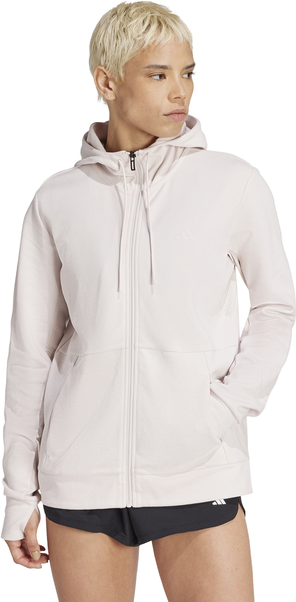 Ob beim Warm-up, Cool-down oder Auspowern, diese adidas Trainingsjacke mit Kapuze performt. Die AEROREADY Technologie hält dich angenehm trocken, damit du dich voll und ganz auf dein Workout konzentrieren kannst. Die FreeLift Passform sorgt für volle Bewegungsfreiheit ohne Verrutschen – perfekt für Klimmzüge, Burpees oder Gewichtheben. Zieh die Kapuze auf und blende alles um dich herum aus. Durch den Einsatz von Recyclingmaterialien können wir bereits vorhandene Gewebe und Fasern wiederverwenden und so dazu beitragen, Müll zu reduzieren. Auch erneuerbare Materialien sind ein Weg, uns weniger abhängig von nicht erneuerbaren Ressourcen zu machen. Unsere Produkte, die mit einem Mix aus recycelten und erneuerbaren Materialien hergestellt sind, bestehen zu mindestens 70 % aus diesen Materialien.