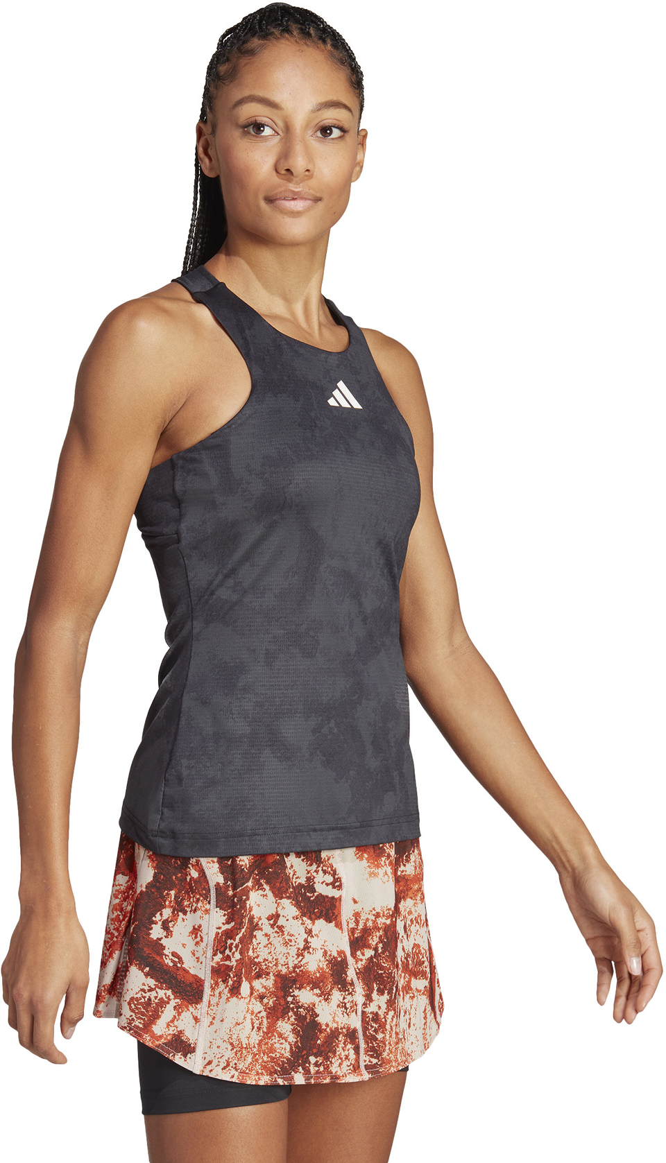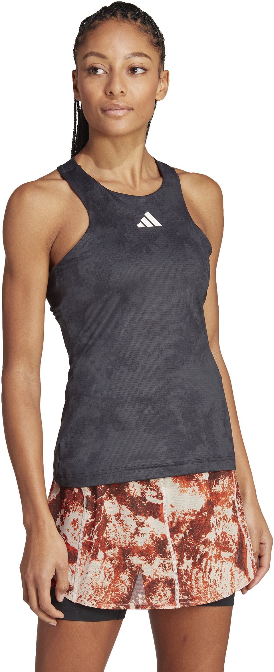 Dieses Piece ist Teil einer adidas Kollektion, die auch bei dem größten Sandplatzturnier der Welt zu sehen sein wird. Entsprechend präsentiert sich das Tanktop mit einer abstrakten Grafik, die an den besonderen Bodenbelag in Paris erinnert. Neben der ausgefallenen Optik punktet es mit kühlender HEAT.RDY Technologie für eine Top-Performance auf dem Court. Außerdem profitierst du durch das Y-förmige Rückendesign von uneingeschränkter Bewegungsfreiheit.