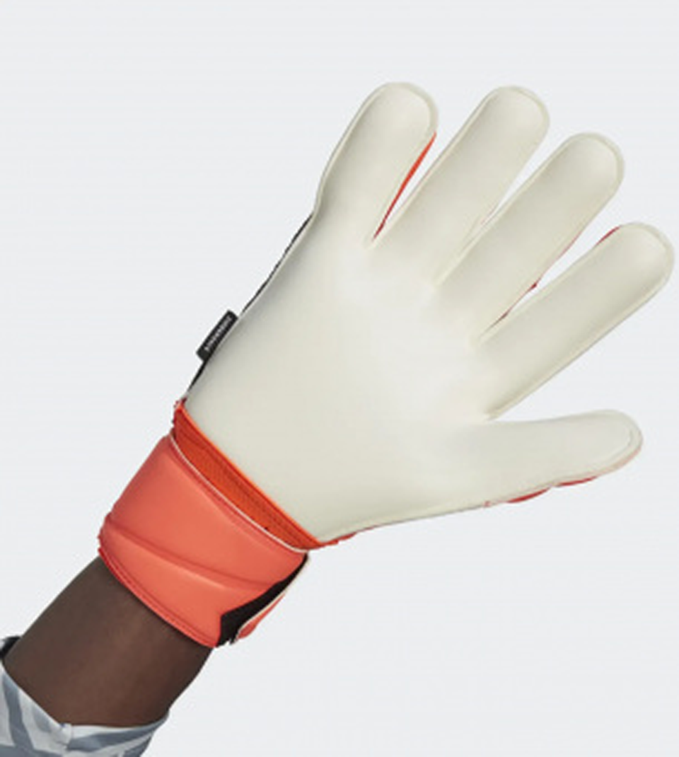 Du beweist im Spiel immer klare Kante. Diese adidas Predator Edge Fingersave Torwarthandschuhe kommen mit Fingersave Elementen, die beim Werfen und Abwehren harter Schüsse für ein Plus an Support sorgen. Die strapazierfähige Soft Grip Pro Handfläche garantiert bei jedem Wetter optimalen Grip und bequeme Polsterung. Und dank der umlaufenden Handgelenksbandage sitzen die Handschuhe bei Matches und Trainingseinheiten immer sicher.