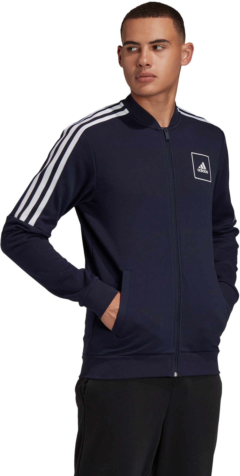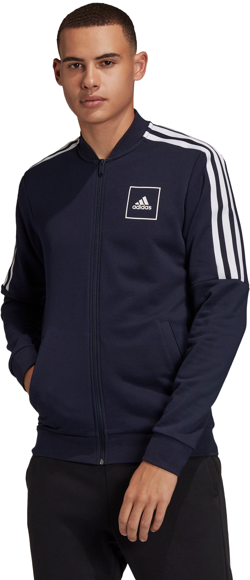 Wir haben der klassischen Trainingsjacke ein Update verpasst. Die Jacke kommt mit den 3-Streifen als Tape entlang der Schultern und einem adidas Logo auf der Brust. Dank weichem French Terry hast du es auf dem Heimweg vom Gym oder nach dem Workout besonders bequem.