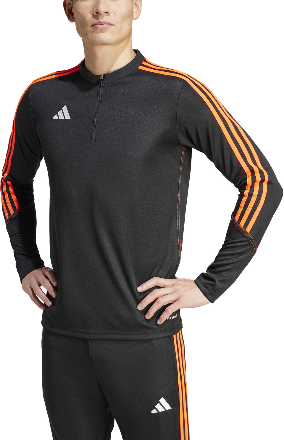 Mit diesem adidas Tiro 23 Club Trainingsoberteil bist du an kühlen Tagen perfekt ausgestattet. Es kommt mit einem Reißverschluss bis zur Brust und Daumenöffnungen an den Bündchen, damit du sie ganz einfach über die Hände ziehen kannst und es schön warm hast. Die AEROREADY Technologie hält dich angenehm trocken, während das weiche, gewirkte Material für ein bequemes Tragegefühl sorgt. Das Produkt ist Teil unseres Engagements gegen Plastikmüll und besteht zu 100 % aus recycelten Materialien.