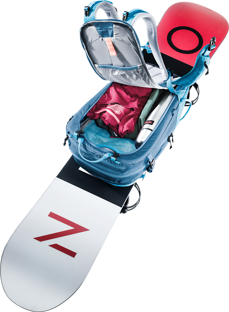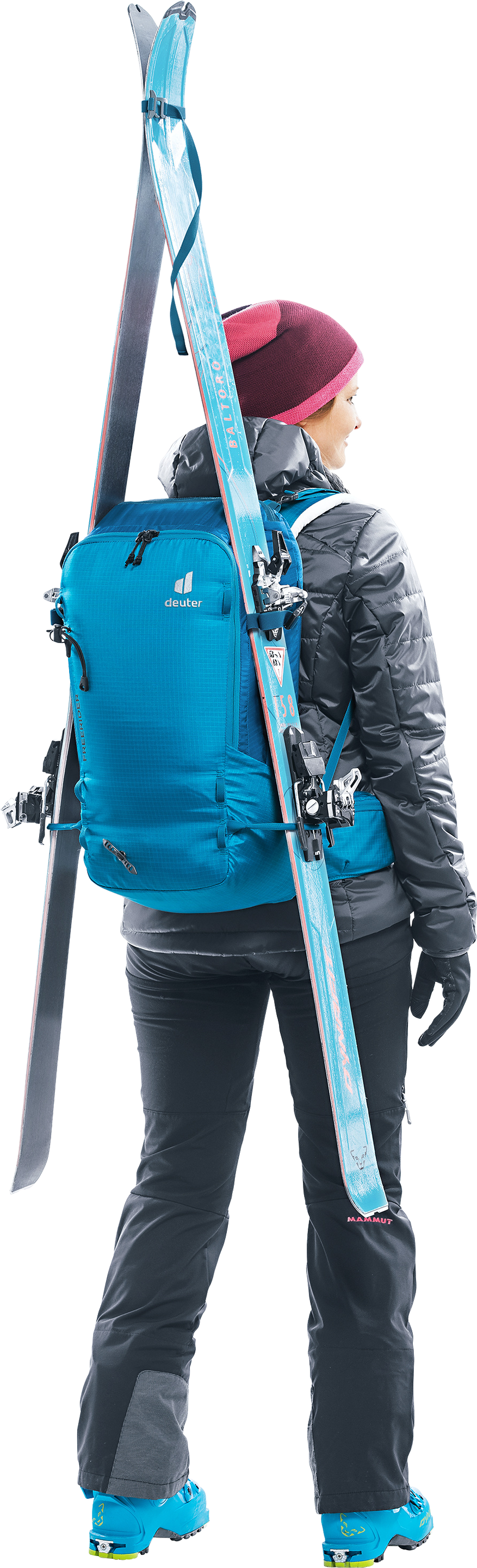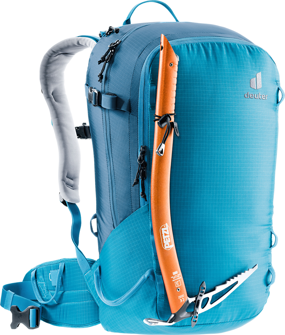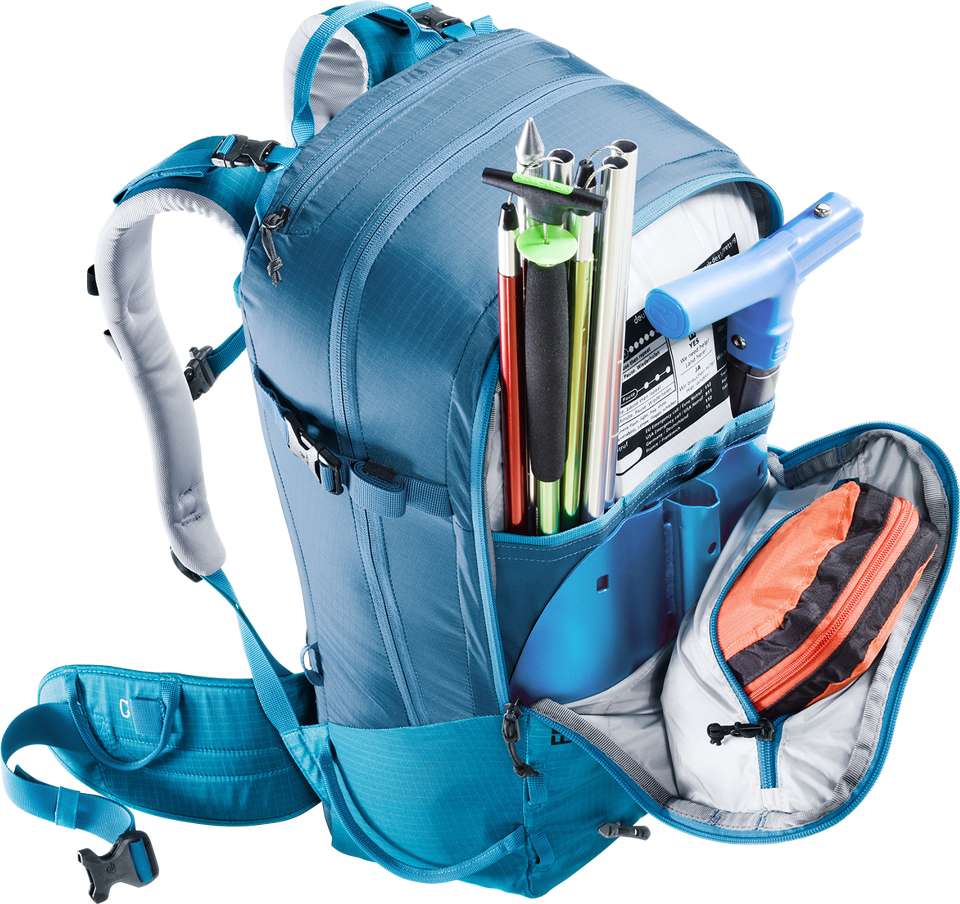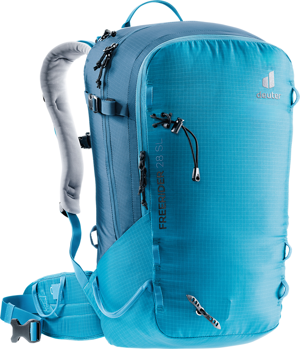 Der Freerider besticht mit seiner durchdachten Winter-Ausstattung, zum Beispiel mit der komplett aufklappbaren Rückenöffnung. Zum einen bietet er so einen optimalen Überblick über die Ausrüstung. Zum anderen bleibt das Rückensystem beim Ablegen des Rucksacks trocken. Sollte trotzdem etwas Schnee an das Tragesystem gelangen, sorgt das neue robuste, atmungsaktive und schneeabweisende Material für einen trockenen Rücken. Auch das Thema Sicherheit wird beim Freerider großgeschrieben. Mit dem separaten und schnell zugänglichen Sicherheitsfach für Sonde und Schaufel hält der Touren-Rucksack das Wichtigste im Notfall griffbereit. Neu ist auch das variable Fixierungssystem. Mit zwei separaten Riemen können Skier, Snowboard und Schneeschuhe im Handumdrehen außen am Rucksack befestigt werden: Skier diagonal oder in A-Form, Snowboard und Schneeschuhe vertikal. Außerdem dienen die flexibel einsetzbaren Befestigungsriemen zur seitlichen Kompression.