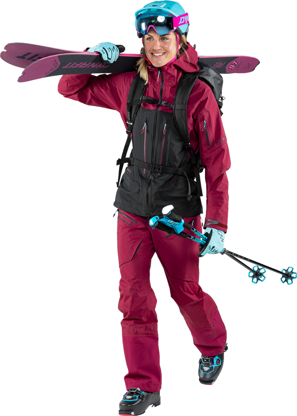 Mit der fortschrittlichen und durchdachten Free GTX Hose für Damen bist Du für steile Abfahrten und tiefen Powder perfekt gerüstet. Entwickelt für Tiefschneee-Ladies, die sich auch bei rauhen Bedingungen jeder Herausforderung stellen, bietet die Free GTX Hose den optimalen Rundum-Schutz mit lässigem Look. Ausgestattet mit der GORE-TEX C-Knit Technologie schützt Dich die Tourenhose zuverlässig vor Wind und Wetter. Gleichzeitig punktet das Material durch gute Atmungsaktivität und lässt Feuchtigkeit entweichen, damit Du im Aufstieg zur perfekten Line nicht überhitzt. Der Latz aus leichtem Nylon verhindert das Eindringen von Schnee, wenn Du im Tiefschnee unterwegs bist. Die Passform kannst Du durch die Länge der Hosenträger und Klettverschlüsse an der Hüfte perfekt auf Dich einstellen. Perforationen auf der Rückseite des Latzes sorgen für zusätzliche Atmungsaktivität. Die Hose hat zwei geräumige Taschen auf den Oberschenkeln und eine kleinere Tasche am Latz. Zwei Reißverschlüsse auf der Seite sorgen für Belüftung beim Aufstieg. Am Beinabschluss ist die Hose mit einem robustem Kantenschutz verstärkt. Mit Druckknöpfen kann die Weite der Hose an Deine Skiboots angepasst werden. Bei tiefem Powder verhindern Gamaschen das Eindringen von Schnee in die Stiefel. In Kombination mit der DYNAFIT Free GORE-TEX Jacke erhältst Du das ultimative, lässig sitzende Free-Touring Outfit. Der Schneefang der Jacke kann zusätzlich an die Hose geklippt werden, um das Eindringen von Schnee zu verhindern. Free GORE-TEX Hose – Für steile Abfahrten und höchsten Powdergenuss.