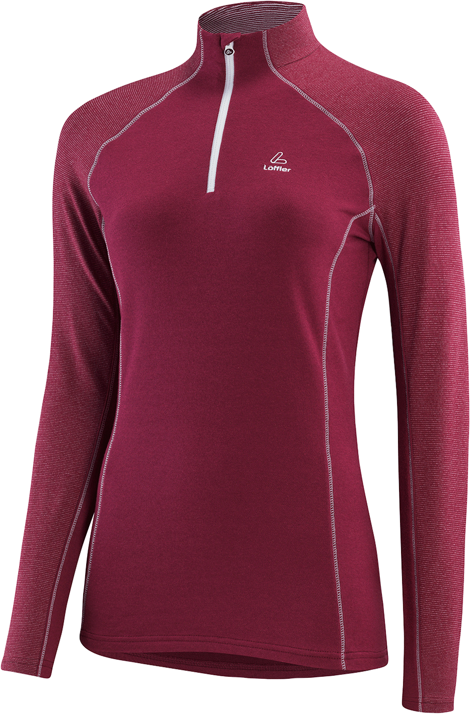 Halfzip mit Stehkragen, Einsätze im transtex® Feinringel, elastisch, schnell trocknend, perfekter Schweißtransport, dezenter Colorblock, Kontrastnähte, Langarm, Raglanschnitt, offener Arm- und Bundabschluss. W MIDLAYER FINE STRIPE TRANSTEX® TRANSTEX WARM slim Schnitt