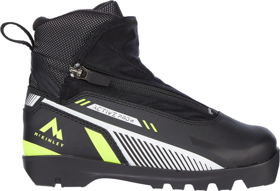 Der komfortable Kinder-Langlaufschuh Active Pro Jr. von McKINLEY ist mit einem warmen Innenschuh aus aufgebürstetem Nylon sowie mit einer Reißverschluss-Abdeckung über der Speed Lacing Schnürung versehen, damit die Füße dauerhaft warm und trocken bleiben. Der Schuh hat eine profilierte Sohle und sorgt durch seine durchdachte Konstruktion für eine optimale Kraftübertragung beim Abstoß. Der ActivePro Schuh passt in alle Prolink und NNN Bindungssysteme.