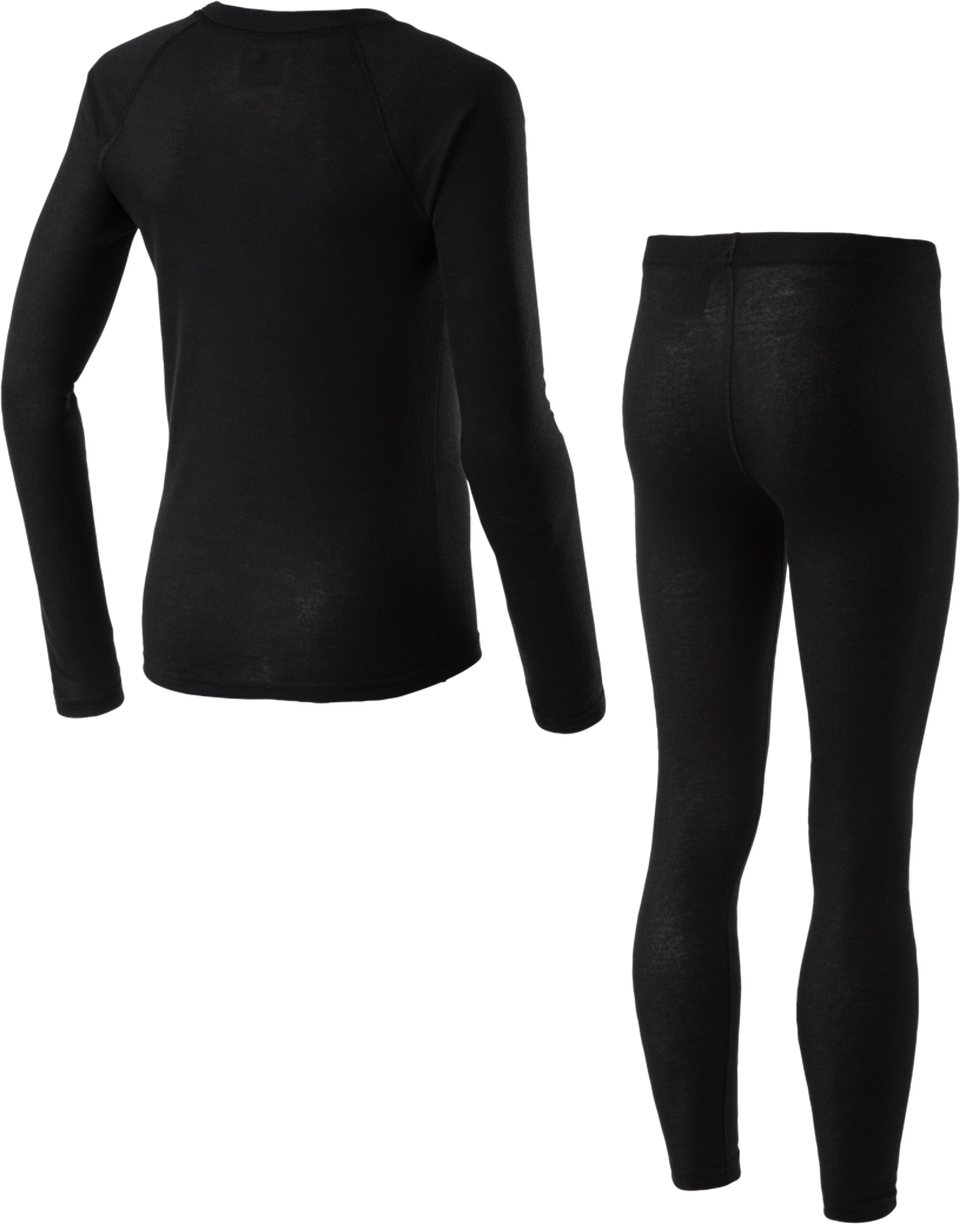 Die zweiteilige Wäsche-Garnitur »Yahto/Yaal« besteht aus einem Longsleeve mit V-Ausschnitt und einer langen Unterhose. Beide Teile sind aus DRY PLUS CLIMATE DRY-Funktionsmaterial gefertigt und sorgen für Leichtigkeit, Trockenheit und ein angenehmes warmes Körperklima. Damit Kinder im Winter richtig warm gehalten werden, wurden die Innenseiten des Shirts und der Unterhose angeraut, um wärmende Körperreibung zu erzeugen.