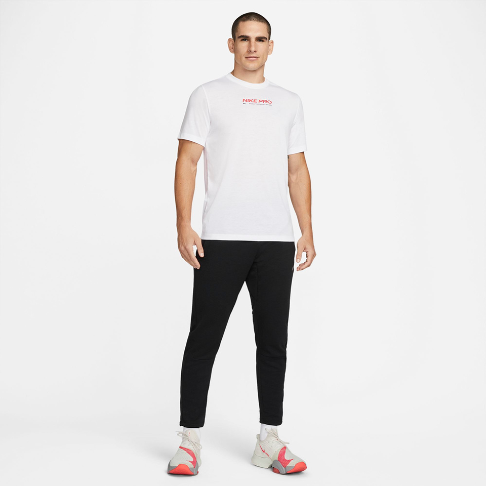Das Nike Pro T-Shirt sorgt mit schweißableitender Technologie und weichem Jersey für trockenen Tragekomfort von der ersten bis zur letzten Wiederholung.