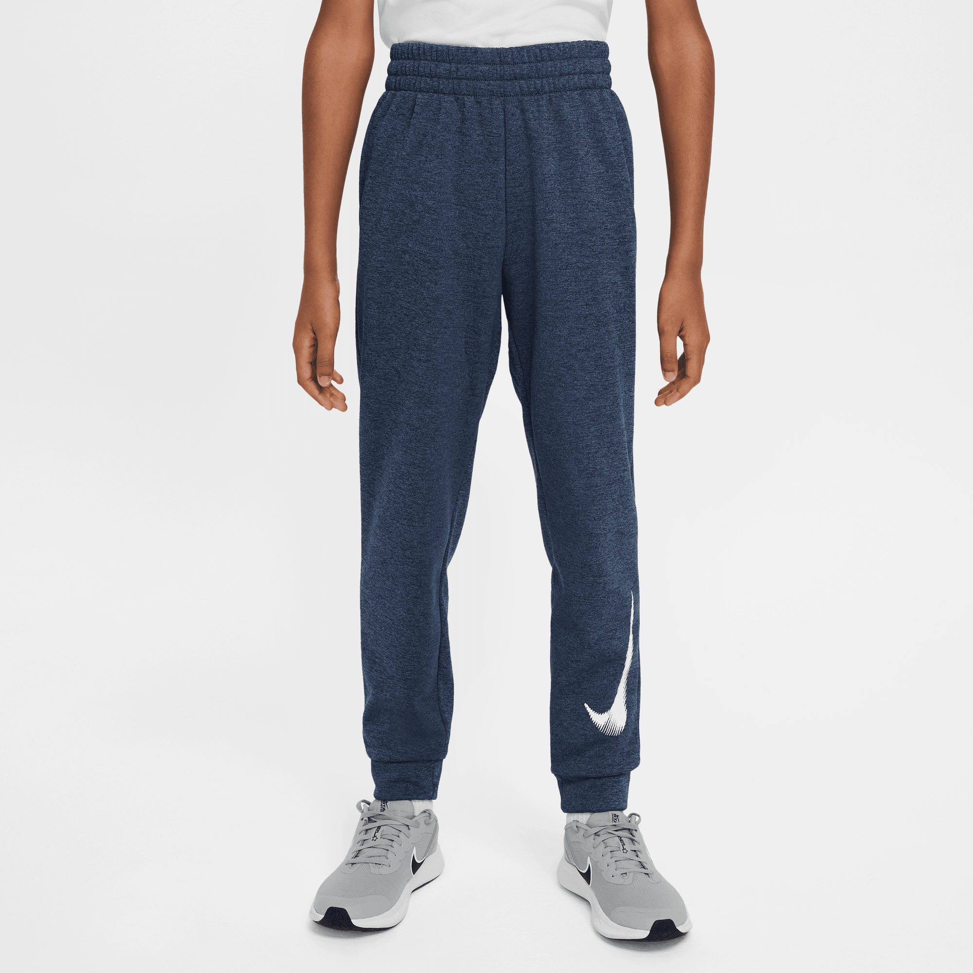 Nike Therma Multi+ Trainings-Jogger für ältere Kinder Diese Jogger ist ein vielseitiger MVP für jeden Tag, egal wie das Wetter ist. Dieses Fleece ist an der Außenseite besonders geschmeidig und innen für immer flauschig warm. Es wurde für das Spielen in der Kälte entwickelt, damit du auch bei niedrigeren Temperaturen länger draußen bleiben kannst. Das Swoosh-Logo unten am Bein verleiht deinem Look das gewisse Etwas, damit du selbstbewusst auf jede Spielfläche gehst. Nike Therma-FIT-Technologie nutzt deine natürliche Körperwärme, um dich bei kaltem Wetter warm zu halten. Diese neue, verbesserte Passform wurde für jede Form und Größe entwickelt und eignet sich dadurch für alle Kinder. In den schräg geschnittenen Taschen hast du wichtige Dinge auch beim Spielen immer griffbereit. Mit dem Kordelzug mit Schnellverschluss kannst du die Taille unterwegs enger machen. More Details. 100 % Polyester. Swoosh-Print. Maschinenwäsche. Importiert. 100% POLYESTER