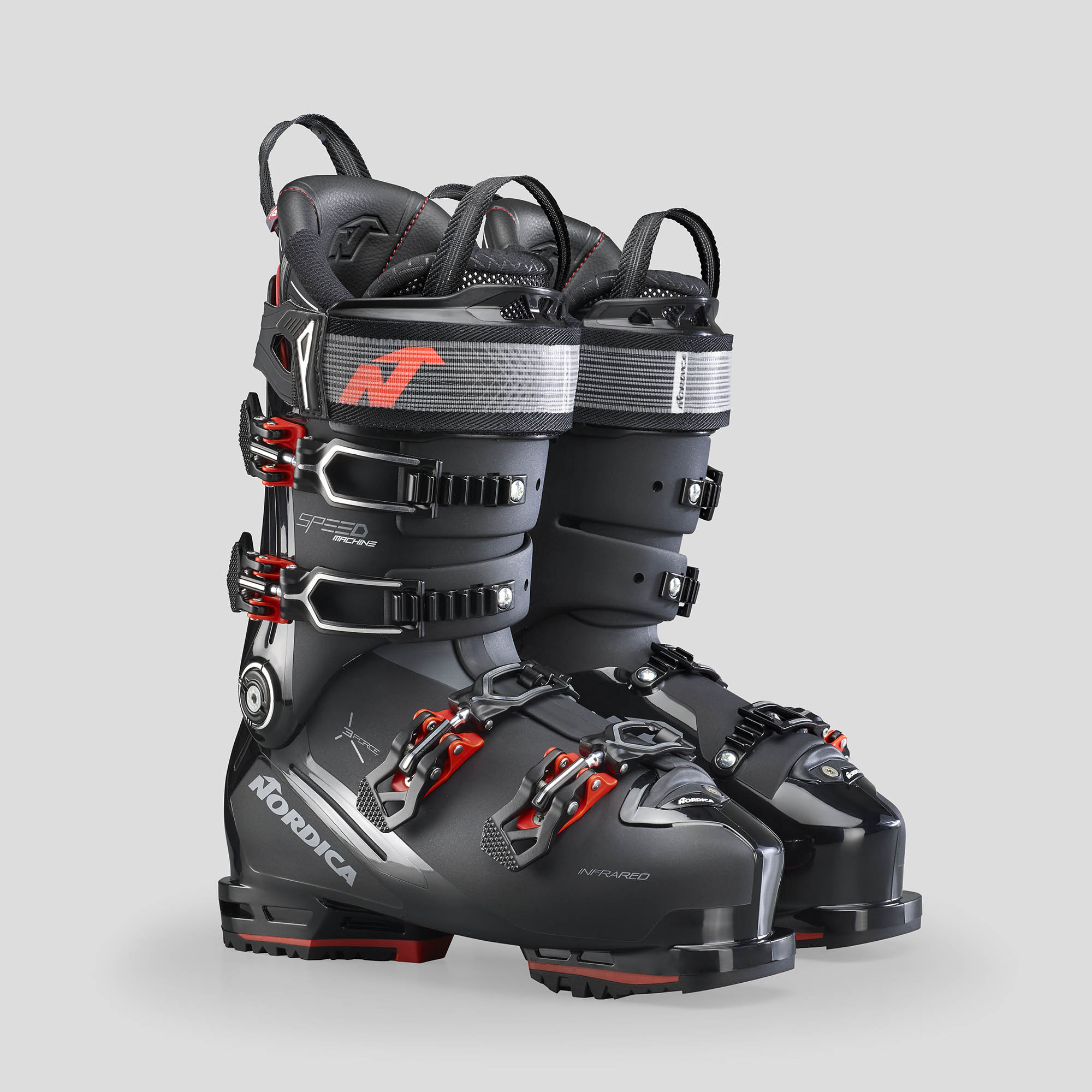 Nordica hat den Speedmachine 3 130 entwickelt, damit du jedes Terrain bei allen Bedingungen im Griff hast. Limits kennt das High-Performance-Modell nicht. Es ist eine große Herausforderung ein Produkt, das bereits eine Legende ist, nochmals weiterzuentwickeln und zu verbessern. Aber genau diese Aufgabe hat das gesamte Nordica Team angespornt, jedes Detail engagiert und innovativ zu überarbeiten. Selbst anspruchsvollste Skifahrer sind komplett begeistert. Die 3 Force Technologie von Nordica maximiert die Energieübertragung vom Bein und Fuß auf den Innenschuh und die Schale. Das sorgt für eine unvergleichliche Power und Kontrolle und steigert den Komfort und die Effizienz. Für einen verbesserten Halt sowie eine höhere laterale Impulsübertragung, ist der Innenschuh mit 3 Force EVA-Einsätzen ausgestattet. Bei Bedarf, kann selbstverständlich die Schale durch das patentierte InfraRed Verfahren, der Innenschuh im Wärmeofen und die Schnallen individuell angepasst werden. Mit dem Speedmachine 3 130 von Nordica werden deine Träume wahr.