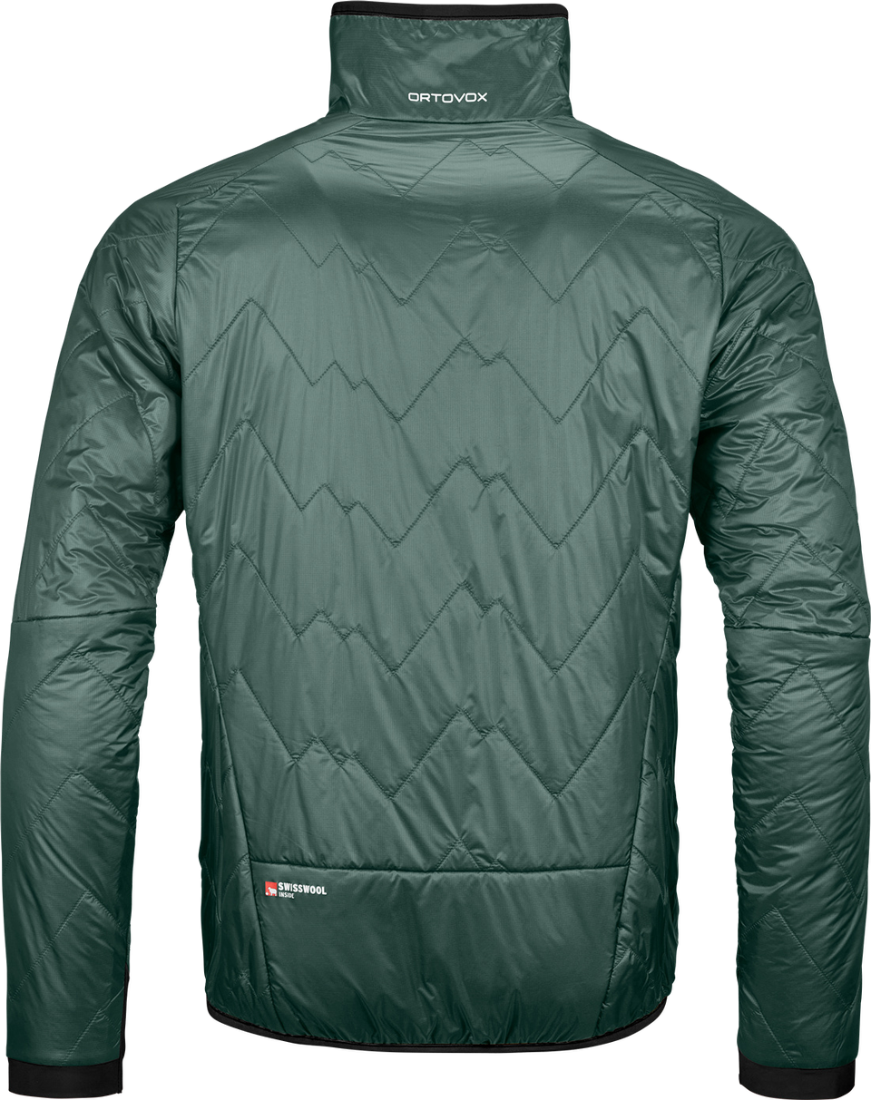 Auch an klirrend kalten Wintertagen hält die SWISSWOOL PIZ VIAL JACKET für Herren Skitourengeher in der Spur. Mit ihrer durchgehenden 90 g/m² Füllung und einem idealen Gewicht-Isolationsverhältnis zählt sie zu den wärmsten SWISSWOOL-Teilen innerhalb der Skitour-Kollektion – die auffällige Zick-Zack-Steppung in Bergform verleiht ihr außerdem eine coole Optik. Ihr innovatives PERTEX® QUANTUM DIAMOND FUSE Außenmaterial besteht aus einem dicht gewebten, diamantförmigen Garn aus 100 % recyceltem Polyamid. Der leicht glänzende Stoff ist winddicht, wasserabweisend, atmungsaktiv und außerordentlich robust. Gegen die eisige Luft am Berg ist die Jacke mit einem hohen Kragen und elastischen Einsätzen am Ärmelsaum ausgestattet. Die zwei Fronttaschen sind rucksackkompatibel und leicht zugänglich. Dabei sorgt der aktive, ergonomische und zugleich lässige Schnitt für maximale Bewegungsfreiheit. Die SWISSWOOL PIZ VIAL JACKET für Herren ist außerdem nicht nur stylisch und hochfunktional, sondern auch klimaneutral hergestellt und PFC-frei.