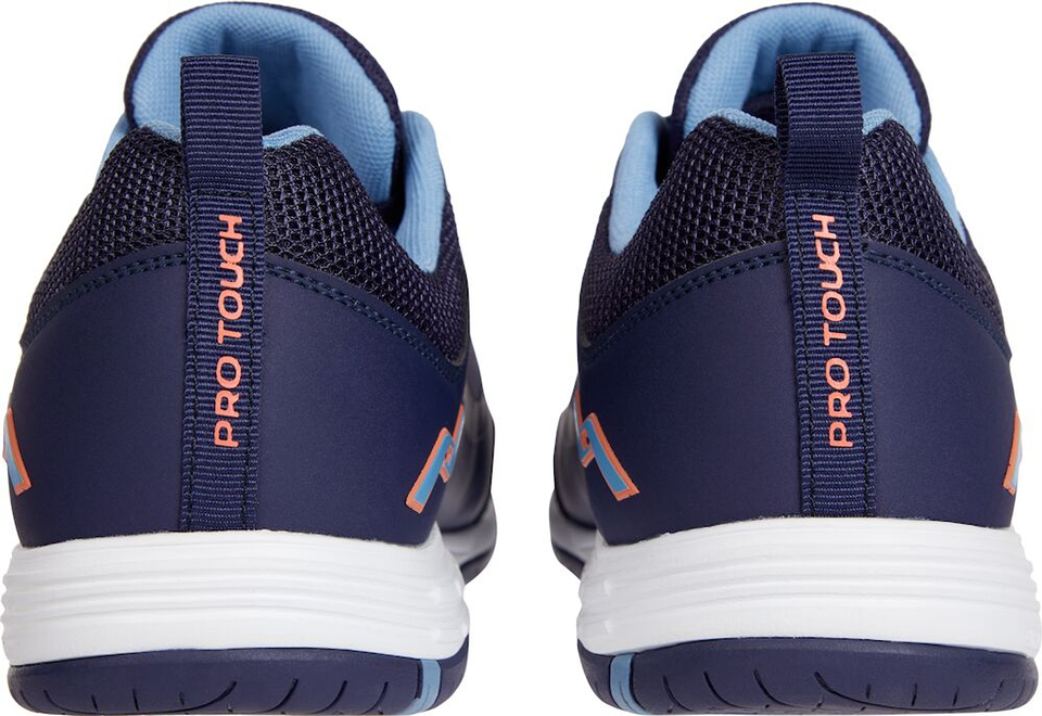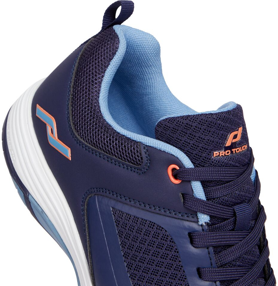 Mit dem Rebel IV für Damen bietet PRO TOUCH einen leichten Hallensportschuh für bewegungsintensive Sportarten wie vor allem Volleyball. Sein haltgebendes Obermaterial aus einer Kombination aus Mesh und PU-Material ist leicht und atmungsaktiv und kommt mit einem Innenschuh-Material aus weichem Textil. Die herausnehmbare Einlegesohle wirkt zudem leicht dämpfend und steigert den Komfort zusätzlich. Abgerundet werden die Hallensportschuhe durch eine griffige Gummi-Außensohle, die sich für jeden Indoor eignet.