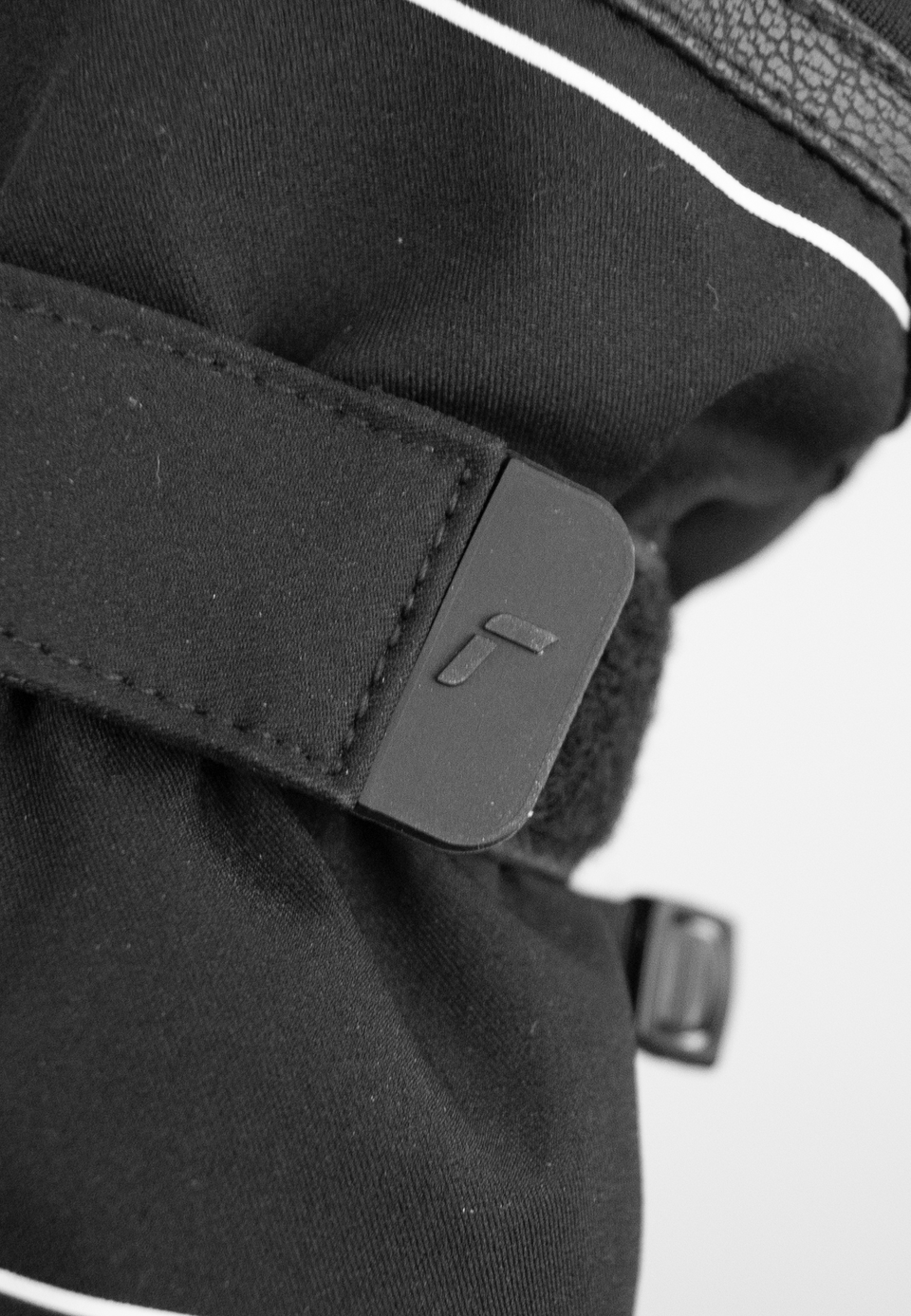 Wasserdichter Softshell-Handschuh mit langer Stulpe, verstellbarem Bündchen und intelligentem Stoppersystem, um den Schnee außerhalb des Handschuhs zu halten.