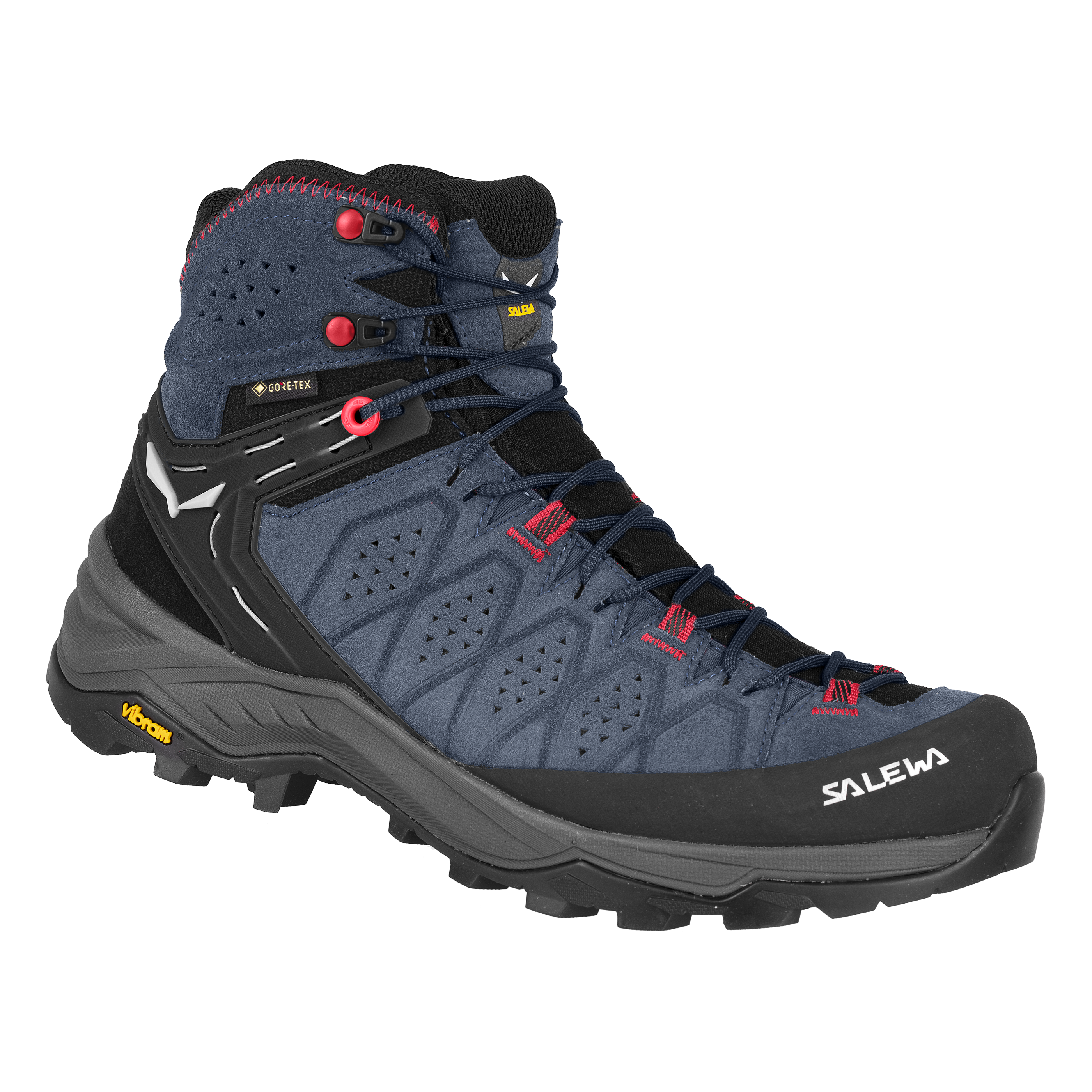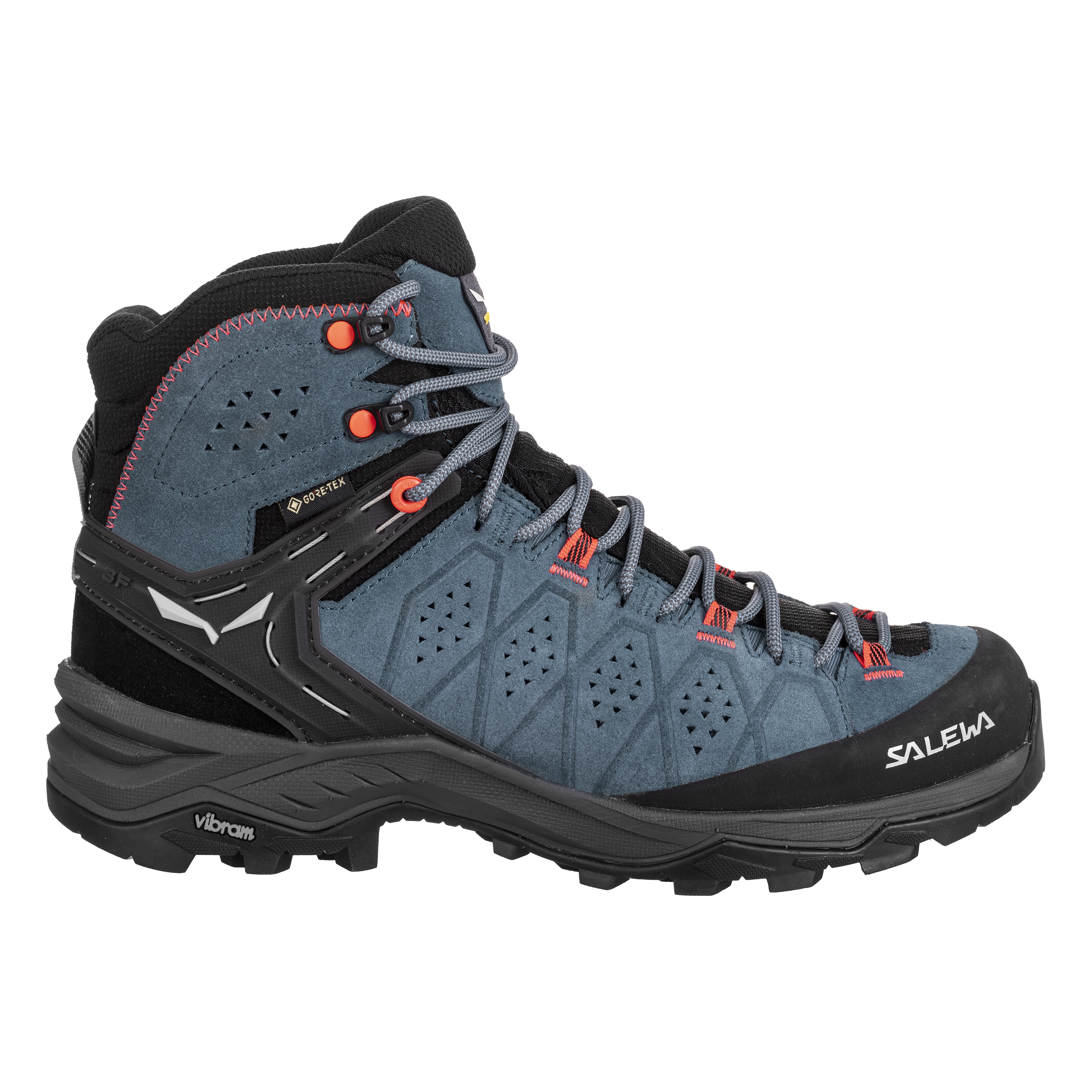 Zuverlässiger Schutz Der Alp Trainer 2 ist ein moderner Wanderschuh mit halbhohem Schaft, der dich bei weiten Wanderungen auf rauem Gelände zuverlässig schützt. Er hat ein robustes, hochwertiges Veloursleder-Obermaterial mit strapazierfähigen Stretcheinsätzen an der Zunge und ein wasserdichtes, atmungsaktives GORE-TEX® Extended Comfort Futter. Der großzügige Gummirand bietet zusätzlichen Schutz vor Felskanten und Geröll. Tragekomfort und Halt Der Schuh wurde speziell für Damen entwickelt, um die besondere Form des weiblichen Fußes zu berücksichtigen. Er hat eine präzise Passform, gibt deinem Fuß Halt und ist gleich beim ersten Anziehen bequem. Unser patentiertes 3F System sorgt für festen Halt am Knöchel und seitliche Stabilität auf rauem Terrain, während der weiche Flex Collar dem Knöchel mehr Bewegungsfreiraum gibt und bergab den Tragekomfort erhöht. Mit dem anpassbaren SALEWA® Multi Fit Footbed Plus (MFF+) kannst du zwischen verschiedenen Einlagen wählen und so das Schuhvolumen auf dich abstimmen. Das Kletterschuh-Schnürsystem ermöglicht außerdem ein individuelles Festziehen bis zu den Zehen. Griffigkeit und Kontrolle Die optimierte Vibram® Alpine Hiking Außensohle, die nur von SALEWA® angeboten wird, verbessert die Leistung und Kontrolle auf ganz unterschiedlichem Gebirgsterrain. Durch ihre speziellen Kletter-, Haftungs- und Bremszonen überzeugt sie zudem auch unter nassen und schlammigen Bedingungen. Der Alp Trainer 2 ist ein leichter, bequemer und zuverlässiger Schuh – eine exzellente Wahl für alpine Wanderungen jeder Art.