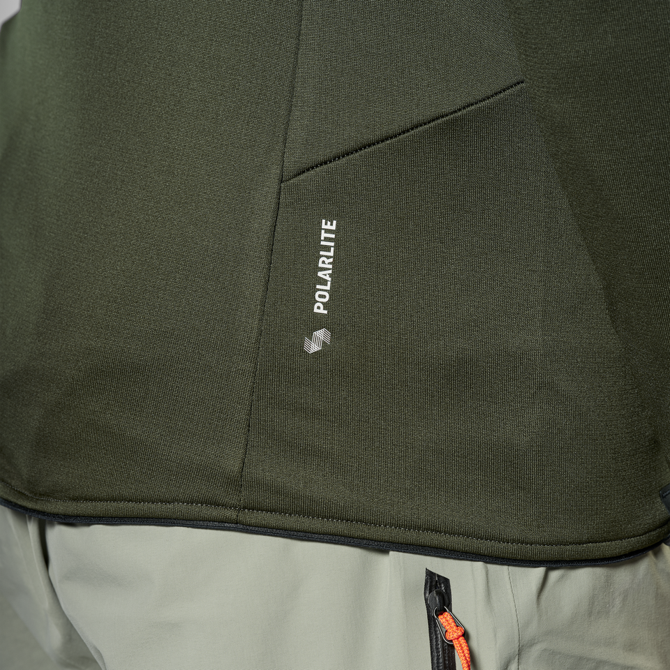 Entwickelt, getestet und bewährt zwischen den schroffen und wilden Gipfeln der Dolomiten: Die Sella Crevasse Jacke ist eine warme, 370 g leichte Fleecejacke mit einer glatten Außenseite, die sich auch unter einer Hardshelljacke oder einer Isolationsschicht angenehm tragen lässt. Die spezielle Gitterstruktur auf der Innenseite sorgt zudem für eine hohe Wärmeleistung bei gleichzeitig minimalem Gewicht und der Vier-Wege-Stretch für die nötige Bewegungsfreiheit auf Tour. Besonders bei anstrengenden Aufstiegen bewährt sich die Kanalstruktur: Durch die Lufteinschlüsse ist das Material hoch atmungsaktiv und kann Feuchtigkeit wie Schweiß wesentlich schneller abtransportieren. Die Fleecejacke verfügt über eine verdeckte Fronttasche sowie über elastische Ärmel- und Saumabschlüsse, welche die Zugluft abhalten.
