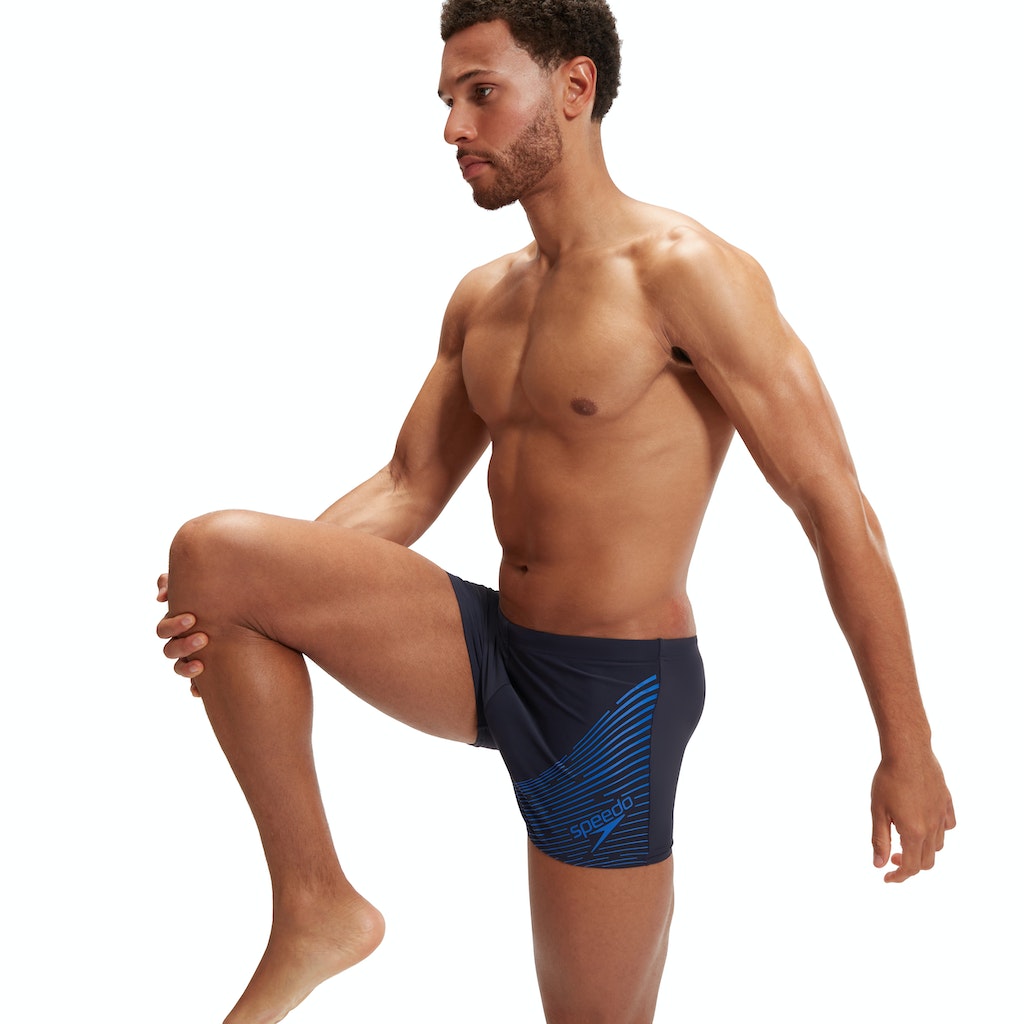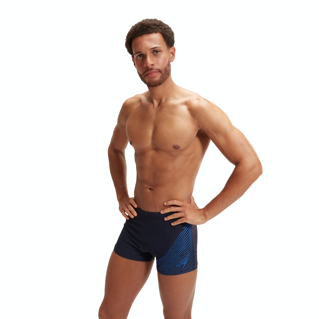 Stil und Langlebigkeit. Mit den marineblauen Medley Aquashorts mit Logo und Tunnelzugbund sowie einem asymmetrischen Design, das die neueste Entwicklung unserer blauen Medley-Logografik zeigt, fühlst du dich beim Training wohl. Unser EnduraFlex Material bietet eine höhere Chlorbeständigkeit als herkömmliche Bademodestoffe und sitzt dank CREORA® HighClo™ länger wie neu. Darüber hinaus werden Nylongarne im EnduraFlex-Gewebe zu 100 % aus Abfällen hergestellt, wie zum Beispiel aus Abfälle aus Fabriken.