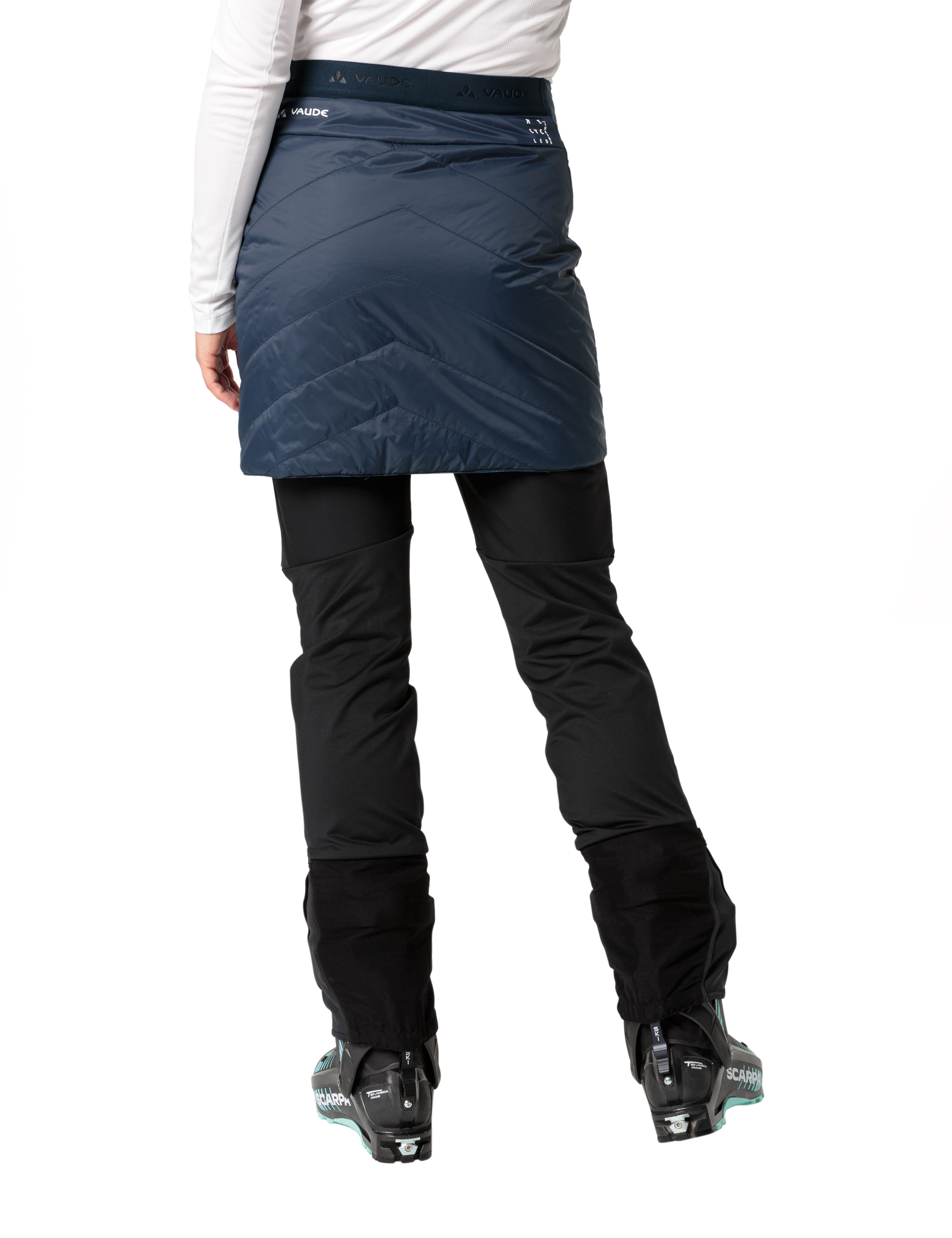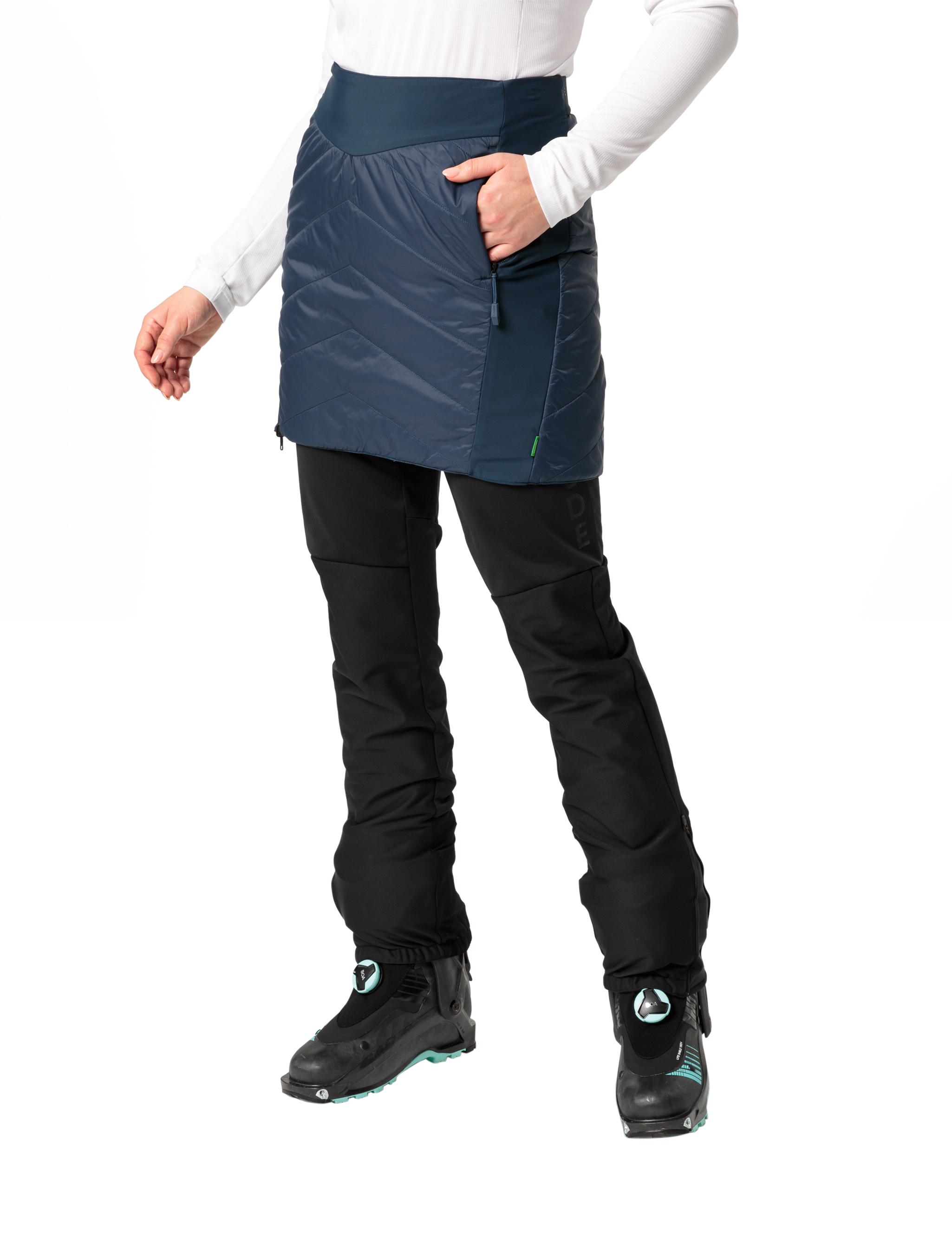 Schnell rauf auf den Berg, nicht frieren und dabei noch gut aussehen - das ermöglicht der Sesvenna Reversible Skirt für Damen! Er ist ein mit umweltfreundlichem PrimaLoft® Silver Insulation Eco wattierter Wenderock, der durch den durchgehenden, seitlichen Reißverschluss schnell und einfach über die Hose gezogen werden kann. Je nach Laune kann die eine oder die andere Farbe außen getragen werden. Der Damen Isolationsrock sitzt dank des elastischen Bundes und der seitlichen Stretcheinsätze sehr komfortabel und schützt Nieren und Oberschenkel vor Kälte, damit der Gipfelmoment nach einem anstrengenden Aufstieg noch länger genossen werden kann. Der Wenderock ist mit Eco Finish umweltfreundlich wasserabweisend ohne Fluorcarbone (PFC) hergestellt. Als Mitglied mit Leader Status bei der unabhängigen Organisation Fair Wear engagiert sich VAUDE für faire Arbeitsbedingungen und faire Löhne. Zudem ist dieses Produkt klimaneutral: Die Emissionen aus Materialien, Herstellungsprozess und Versand wurden ganzheitlich ermittelt und systematisch reduziert. Aktuell nicht vermeidbare Emissionen wurden vollständig über die unabhängige Non-Profit-Organisation „myclimate“ kompensiert.