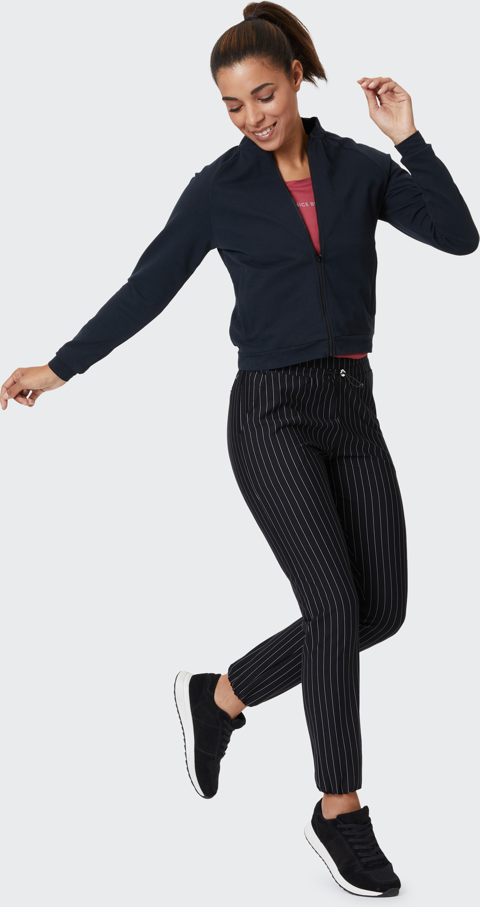 Die Trainingshose MILLIE für Damen: modische Sportswear für Aktive!Die Trainingshose MILLIE in ansprechender Streifenoptik von VENICE BEACH ist ideal für alle Frauen geeignet, die nicht nur alles beim Sport geben, sondern dabei auch eine gute Figur machen wollen. Sie verbindet Sportswear und Mode zu einem perfekten Statement Piece für jedes Workout – egal ob Spinning, Laufen oder Krafttraining. Die Damen Athleisurehose schmiegt sich perfekt an Ihre Körperform an. Das gewährt jede Menge Bewegungsfreiheit, damit Sie voller Energie durchstarten können. Die Trainingshose liefert nicht nur beim Training optimale Performance, sondern auch im Alltag und in der Freizeit. Der moderne Look ist inspiriert vom Flair des berühmten Strandes in Los Angeles. Die zeitgemäße Interpretation unterstreicht Ihren ausgewogenen Lebensstil.